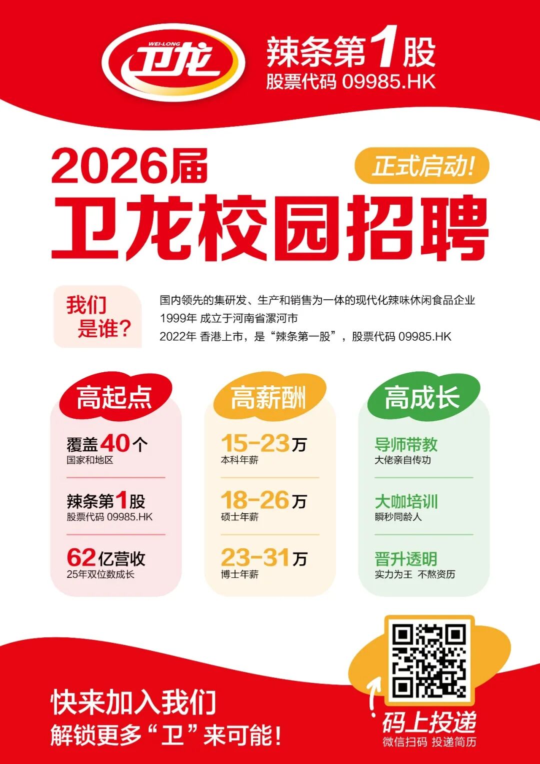 【寒假促就业暖心行动】卫龙集团2026届校园招聘进行时!