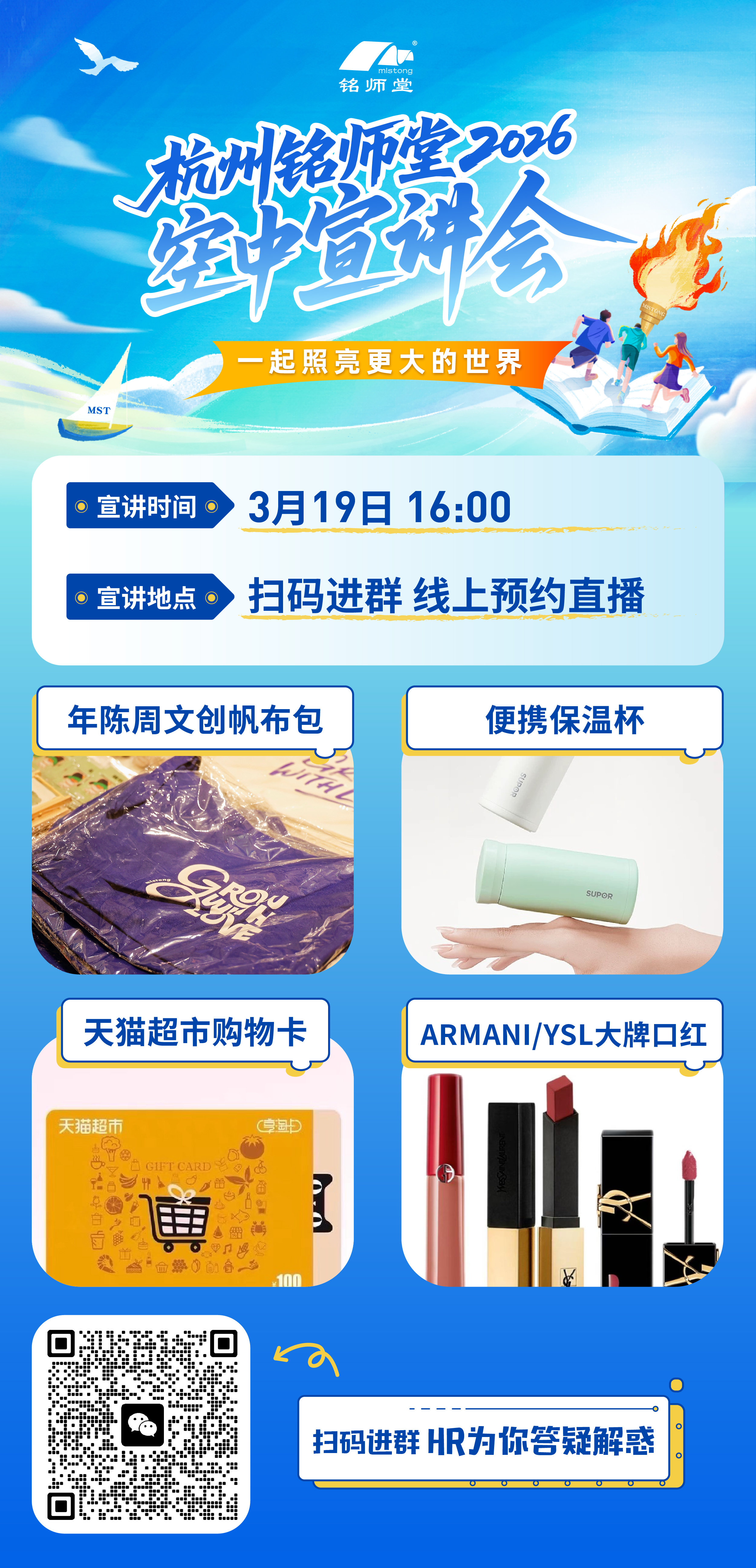 杭州铭师堂创立于2006年,公司使命为“用互联网改变教育,让中国人都有好书读”。我们旨在用互联网促进公平而有质量的教育,打破城乡之间的教育壁垒,让小城市、农村的学生也可以享受跟大城市一样的优质教育,以教育公平促进共同富裕。